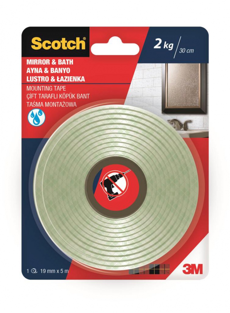Banda dublu adeziva rezistenta la umiditate permite prinderea accesoriilor fara a folosi cuie sau dibluri.