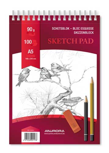 Bloc desen cu spirala, A5, 100 file – 90g/mp, pentru schite creion, AURORA Esquisse – hartie alba