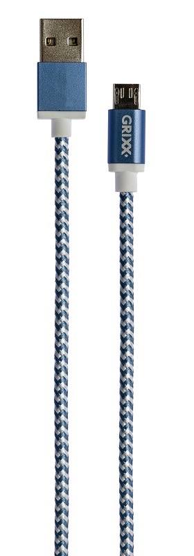 Cablu date GRIXX – Micro USB to USB, impletit, lungime 1m – albastru/alb