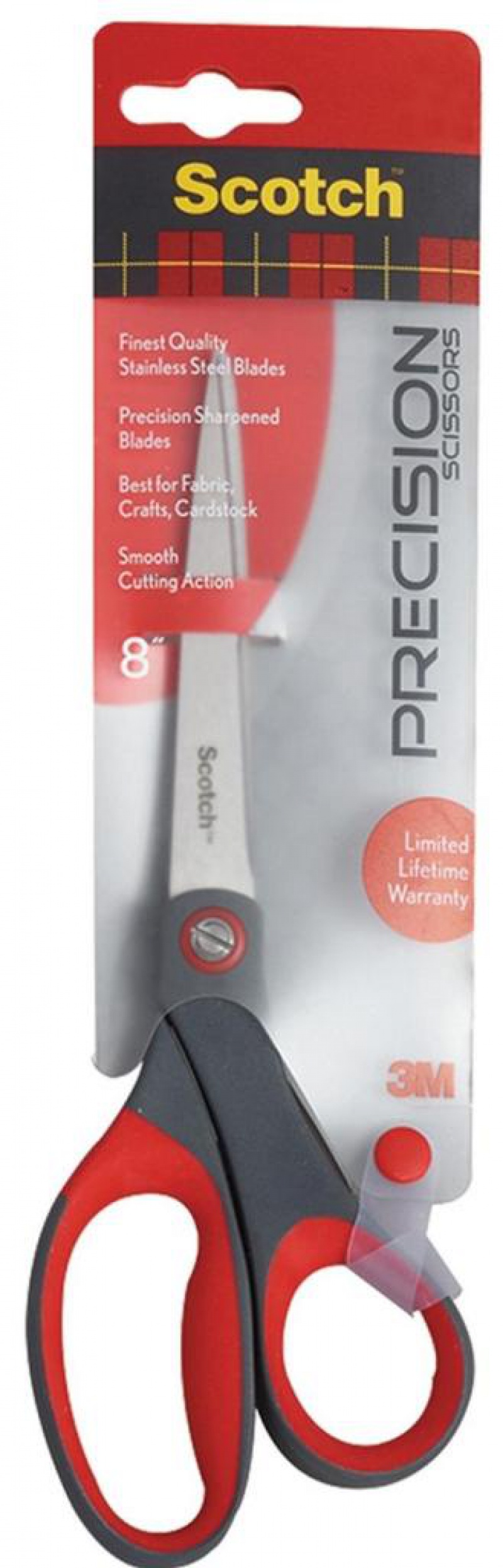 Foarfeca ergonomica, 20.5cm, varf ascutit pt. taiere de inalta precizie, 3M – SCOTCH Office – rosu/g