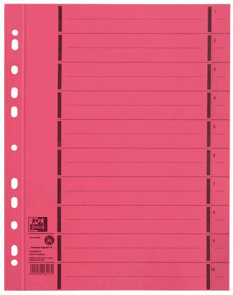 Separatoare carton manila, 250g/mp, 300 x 240mm, 100/set, OXFORD – rosu