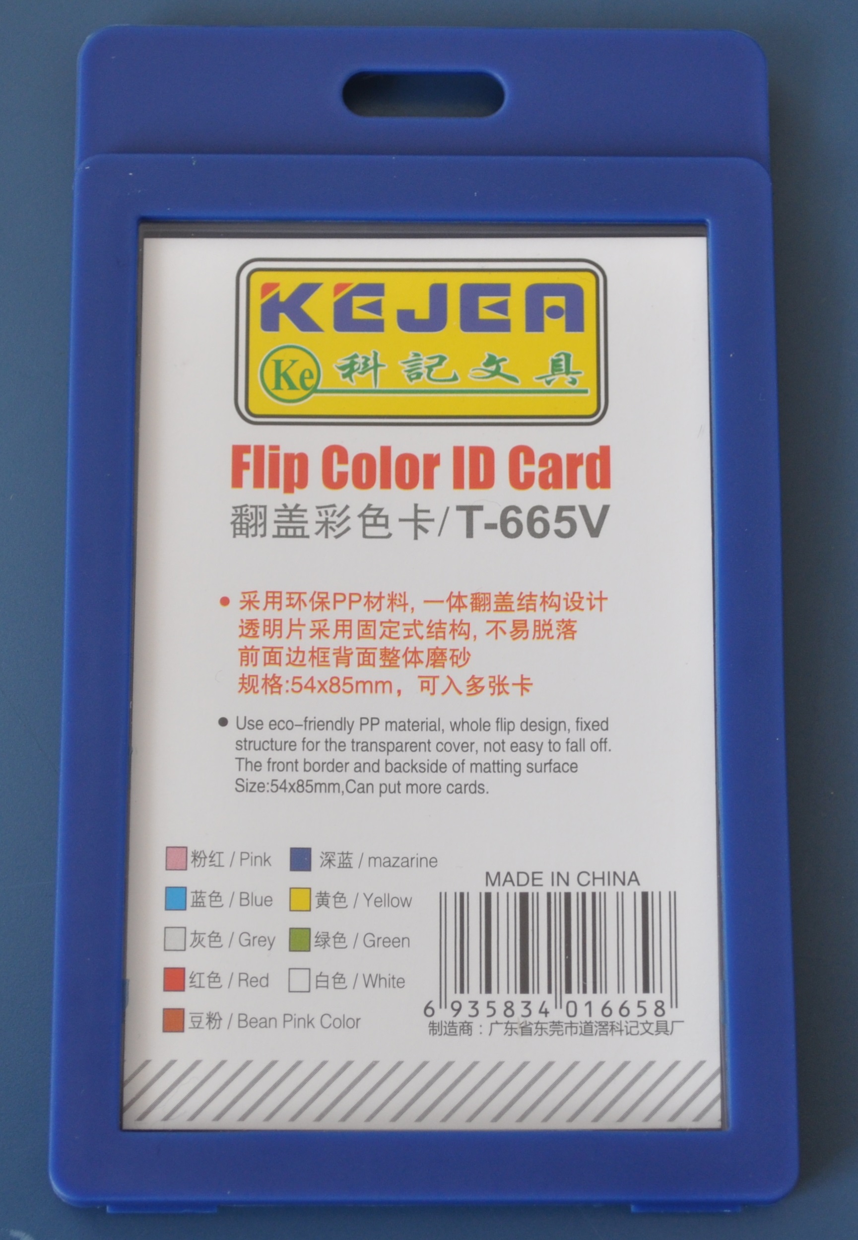 Suport PP-PVC rigid, pentru ID carduri, 74 x105mm, vertical, KEJEA -albastru